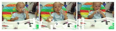 Recently, he was so difficult when taking a bath. He has to cry aloud when we ask him to go bath. I guess it's because of some trauma and I can't figure it out what's wrong with him. Hopefully, with his new toys, he wants bathing again....^^