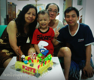 One of my friend, Tante Amel, told me that she and Tante Baby wanted to give a free birthday cake for you as both of them love you dearly. But you still insisted that I HAD to make the cake for you. Oh dear, how you love me so much, doesn't you?